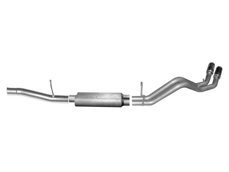 If you're looking to add a little style to your Truck or SUV and want to keep the exhaust from affecting your tow trailer, this Dual Cat back Exhaust System is for you, exiting behind the rear tire for a look that sets your vehicle apart on the street or in the dirt. Hassle free, bolt-on installation with professional looking results. No welding required. Backed by a Lifetime Limited Warranty. Gibson Dual Sport Exhaust System offers a powerful authoritative deep exhaust tone with no annoying noise inside the cab. Dyno tested to assure increased horsepower and produce more torque. Average horsepower gains are 18-20 and 15-20lb-ft of increase torque.