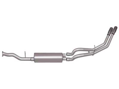 If you're looking to add a little style to your Truck or SUV and want to keep the exhaust from affecting your tow trailer, this Dual Cat back Exhaust System is for you, exiting behind the rear tire for a look that sets your vehicle apart on the street or in the dirt. Hassle free, bolt-on installation with professional looking results. No welding required. Backed by a Lifetime Limited Warranty. Gibson Dual Sport Exhaust System offers a powerful authoritative deep exhaust tone with no annoying noise inside the cab. Dyno tested to assure increased horsepower and produce more torque. Average horsepower gains are 10-15 and 15-20lb-ft of increase torque.