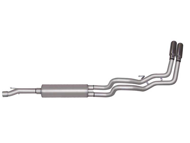 If you're looking to add a little style to your Truck or SUV and want to keep the exhaust from affecting your tow trailer, this Dual Cat back Exhaust System is for you, exiting behind the rear tire for a look that sets your vehicle apart on the street or in the dirt. Hassle free, bolt-on installation with professional looking results. No welding required. Backed by a Lifetime Limited Warranty. Gibson Dual Sport Exhaust System offers a powerful authoritative deep exhaust tone with no annoying noise inside the cab. Dyno tested to assure increased horsepower and produce more torque. Average horsepower gains are 10-15 and 15-20lb-ft of increase torque.