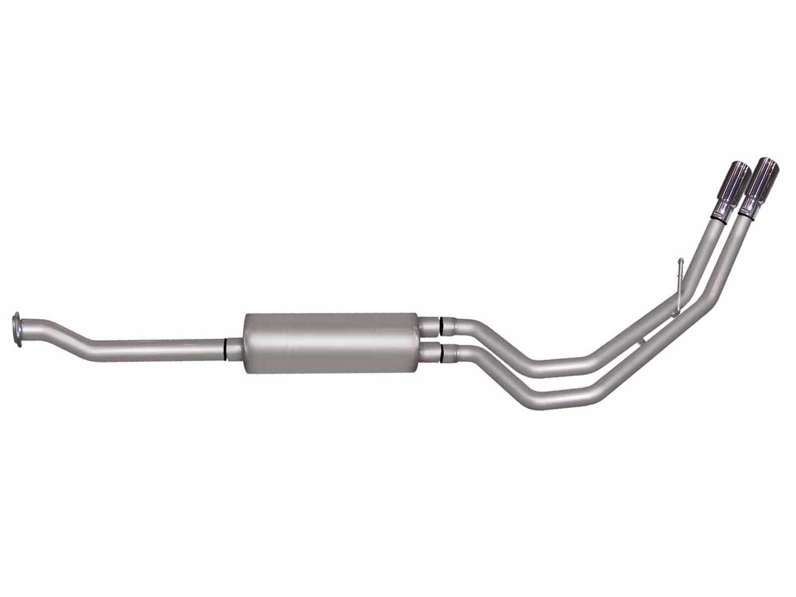 If you're looking to add a little style to your Truck or SUV and want to keep the exhaust from affecting your tow trailer, this Dual Cat back Exhaust System is for you, exiting behind the rear tire for a look that sets your vehicle apart on the street or in the dirt. Hassle free, bolt-on installation with professional looking results. No welding required. Backed by a Lifetime Limited Warranty. Gibson Dual Sport Exhaust System offers a powerful authoritative deep exhaust tone with no annoying noise inside the cab. Dyno tested to assure increased horsepower and produce more torque. Average horsepower gains are 10-15 and 15-20lb-ft of increase torque.