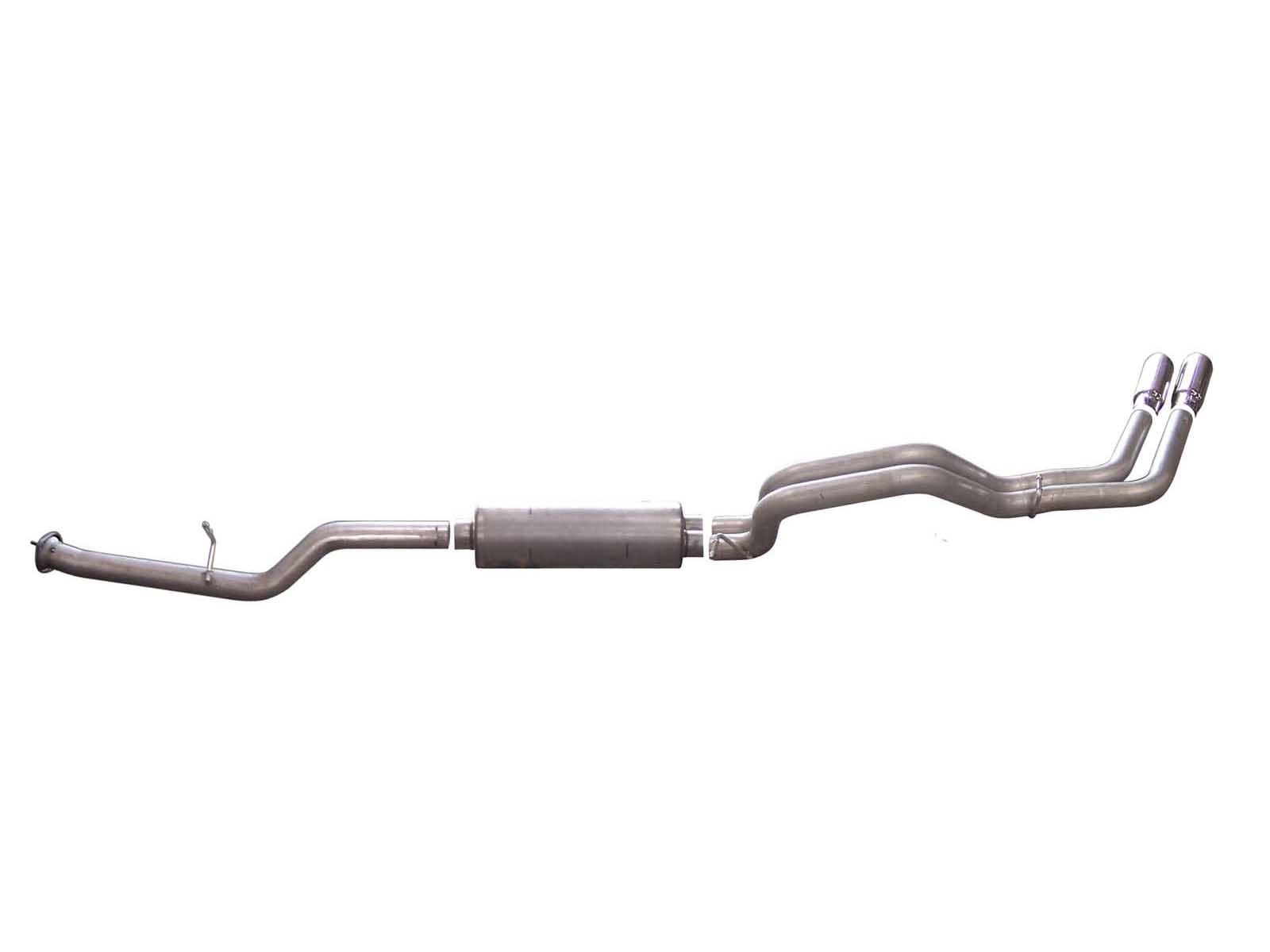 If you're looking to add a little style to your Truck or SUV and want to keep the exhaust from affecting your tow trailer, this Dual Cat back Exhaust System is for you, exiting behind the rear tire for a look that sets your vehicle apart on the street or in the dirt. Hassle free, bolt-on installation with professional looking results. No welding required. Backed by a Lifetime Limited Warranty. Gibson Dual Sport Exhaust System offers a powerful authoritative deep exhaust tone with no annoying noise inside the cab. Dyno tested to assure increased horsepower and produce more torque. Average horsepower gains are 10-15 and 15-20lb-ft of increase torque.