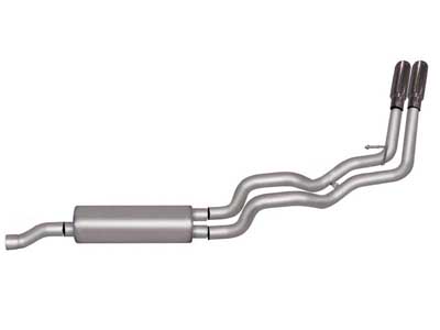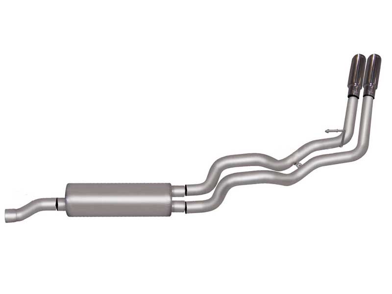 If you're looking to add a little style to your Truck or SUV and want to keep the exhaust from affecting your tow trailer, this Dual Cat back Exhaust System is for you, exiting behind the rear tire for a look that sets your vehicle apart on the street or in the dirt. Hassle free, bolt-on installation with professional looking results. No welding required. Backed by a Lifetime Limited Warranty. Gibson Dual Sport Exhaust System offers a powerful authoritative deep exhaust tone with no annoying noise inside the cab. Dyno tested to assure increased horsepower and produce more torque. Average horsepower gains are 10-15 and 15-20lb-ft of increase torque.