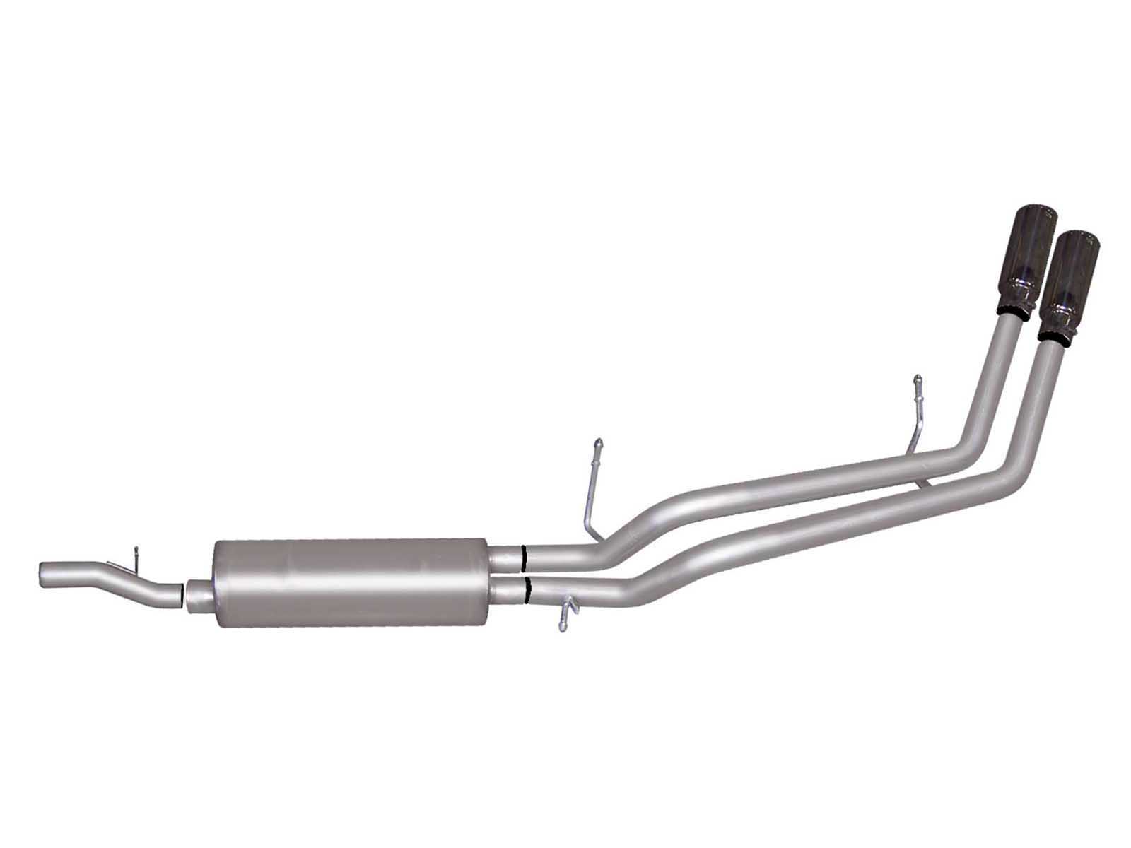 If you're looking to add a little style to your Truck or SUV and want to keep the exhaust from affecting your tow trailer, this Dual Cat back Exhaust System is for you, exiting behind the rear tire for a look that sets your vehicle apart on the street or in the dirt. Hassle free, bolt-on installation with professional looking results. No welding required. Backed by a Lifetime Limited Warranty. Gibson Dual Sport Exhaust System offers a powerful authoritative deep exhaust tone with no annoying noise inside the cab. Dyno tested to assure increased horsepower and produce more torque. Average horsepower gains are 10-15 and 15-20lb-ft of increase torque.