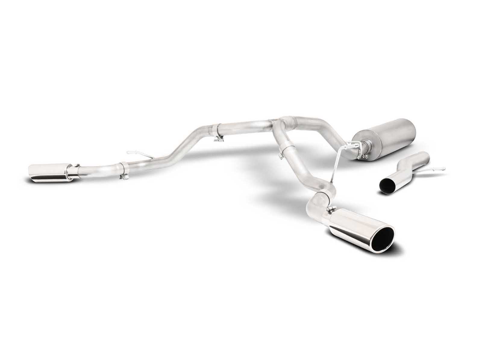 For the extremist who wants to take their SUV to the next level, this dual bolt-on Cat back system is for you. This system exists behind the rear tires at an aggressive angle with a powerful exhaust tone outside and a calming note inside. You will gain bold street looks with powerful dyno tuned and tested street performance gains. You can expect to experience gains on average of 15-20 horsepower. Gibson muffler provides a mean performance sound and complemented with polished Stainless Tips. Easy bolt-on installation. No welding required. Backed by a Lifetime Limited Warranty. If you want Extreme, this system is it.