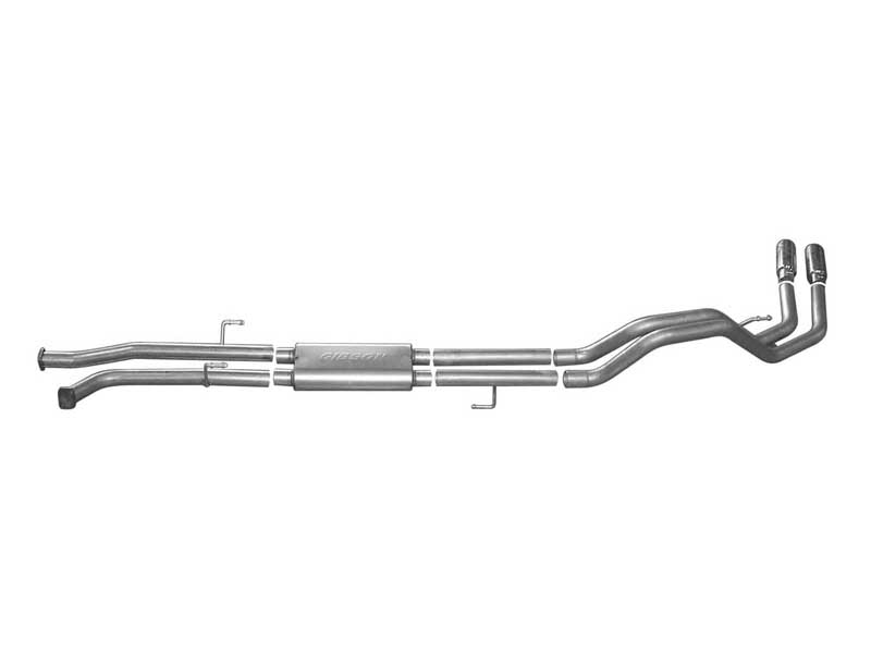 If you're looking to add a little style to your Truck or SUV and want to keep the exhaust from affecting your tow trailer, this Dual Cat back Exhaust System is for you, exiting behind the rear tire for a look that sets your vehicle apart on the street or in the dirt. Hassle free, bolt-on installation with professional looking results. No welding required. Backed by a Lifetime Limited Warranty. Gibson Dual Sport Exhaust System offers a powerful authoritative deep exhaust tone with no annoying noise inside the cab. Dyno tested to assure increased horsepower and produce more torque. Average horsepower gains are 10-15 and 15-20lb-ft of increase torque.