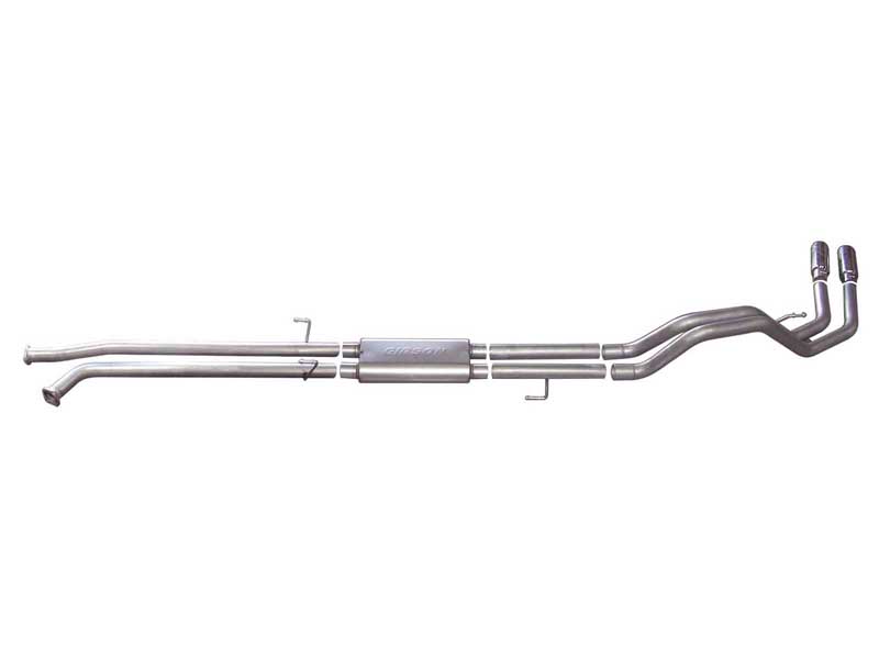 If you're looking to add a little style to your Truck or SUV and want to keep the exhaust from affecting your tow trailer, this Dual Cat back Exhaust System is for you, exiting behind the rear tire for a look that sets your vehicle apart on the street or in the dirt. Hassle free, bolt-on installation with professional looking results. No welding required. Backed by a Lifetime Limited Warranty. Gibson Dual Sport Exhaust System offers a powerful authoritative deep exhaust tone with no annoying noise inside the cab. Dyno tested to assure increased horsepower and produce more torque. Average horsepower gains are 10-15 and 15-20lb-ft of increase torque.