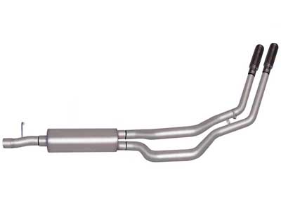 If you're looking to add a little style to your Truck or SUV and want to keep the exhaust from affecting your tow trailer, this Dual Cat back Exhaust System is for you, exiting behind the rear tire for a look that sets your vehicle apart on the street or in the dirt. Hassle free, bolt-on installation with professional looking results. No welding required. Backed by a Lifetime Limited Warranty. Gibson Dual Sport Exhaust System offers a powerful authoritative deep exhaust tone with no annoying noise inside the cab. Dyno tested to assure increased horsepower and produce more torque. Average horsepower gains are 10-15 and 15-20lb-ft of increase torque.