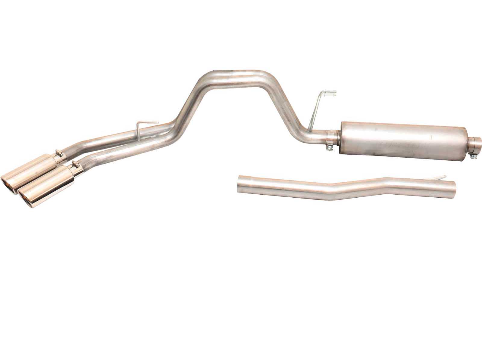 If you're looking to add a little style to your Truck or SUV and want to keep the exhaust from affecting your tow trailer, this Dual Cat back Exhaust System is for you, exiting behind the rear tire for a look that sets your vehicle apart on the street or in the dirt. Hassle free, bolt-on installation with professional looking results. No welding required. Backed by a Lifetime Limited Warranty. Gibson Dual Sport Exhaust System offers a powerful authoritative deep exhaust tone with no annoying noise inside the cab. Dyno tested to assure increased horsepower and produce more torque. Average horsepower gains are 10-15 and 15-20lb-ft of increase torque.