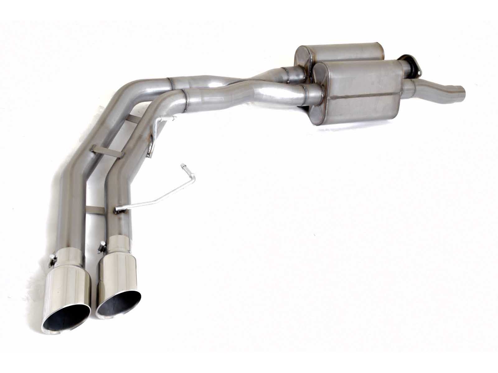Your truck deserves a super serious Performance Exhaust System. Gibson Super Truck Exhaust System offers a loud deep powerful sound with dual tailpipes that exit in front of the rear tires with Stainless Tips. You can expect a race rumble tone with improved acceleration and increased horsepower gains. Typical dyno tested horsepower gains average 10-15 and 15-20lb-ft of increased torque. Hassle free, bolt-on installation. No welding required. Backed by a Lifetime Limited Warranty. Not recommended for towing. Noise level may exceed 95-decibel standard.