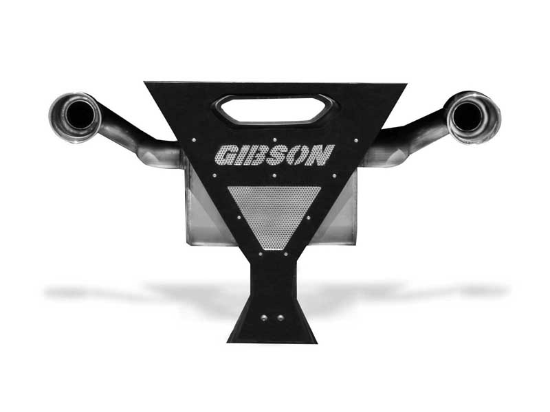 When you purchase an industry changing ride, you need the industry changing looks and sound of a Gibson Performance dual rear exhaust. As soon as you begin to run your Yamaha YXZ up to the ground breaking 10,500 RPM redline, you will instantly feel the added 6HP and notice the unique sound of a highly tuned performance machine. The Slip on Gibson Dual exhaust will include a head pipe connector and a full muffler assembly exiting on both sides with large 4-in. intercooled exhaust tips. Offered in a high quality stainless steel, utilizing our high flow CFT non packed performance muffler and equipped with OHV approved spark arrestors. This is a 100% bolt on system using all the factory OEM mounting points to ensure long lasting durability. Also included is a custom fitted and designed rear beauty plate that encompasses your factory reverse light while showing of a stainless steel mesh cut away. All of this compliments the Yamaha styling and proudly lets everyone know you have great taste in performance, looks, and sound.
