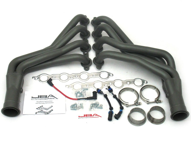 JBA long tube headers are the number one choice for maximum performance gains and high RPM efficiency. These long tube designs are dyno and race proven to deliver the greatest possible increase in horsepower and torque throughout the RPM range. All JBA long tube headers feature large mandrel-bent stainless steel primary tubes, oversized exhaust ports, extra thick 3/8” one piece flanges, and patented JBA Firecone®* merged collectors for smooth flow. Each system is designed to give the maximum amount of ground clearance possible so lowered cars do not drag the collectors on speed bumps. Each system includes high quality hardware and thorough instructions for a professional no-leak installation.