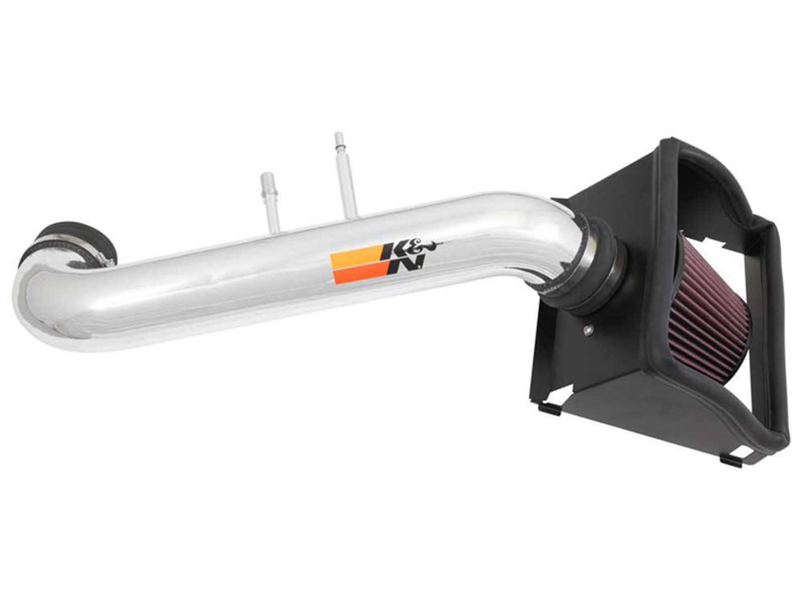 Gain a guaranteed increase in horsepower and torque with a K&N® cold air intake system featuring a mandrel-bent aluminum intake tube. Each system is paired with a washable, reusable High-Flow Air Filter™ featuring oiled cotton filter media. The oversized, conical filter design allows you to go up to 100,000 miles between filter services under normal highway driving conditions. A custom heat shield or air box helps protect intake air from the high temperature of your engine bay, and the entire system can typically be installed in less than 90 minutes. Some intakes are not legal for sale or use on any pollution controlled motor vehicle in California. See the product specifications for CARB status on each part for a specific vehicle.