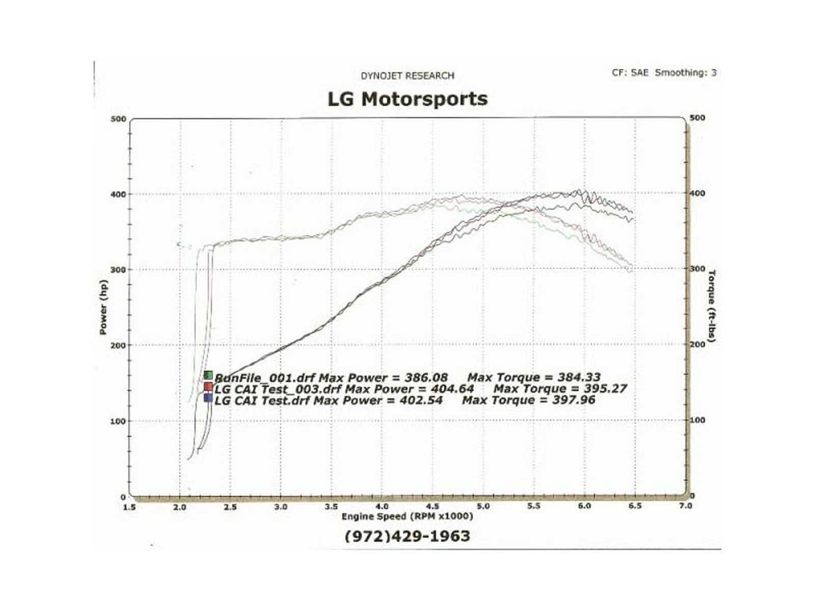 With the velocity stack, large inlet tube, and high flow filter we have seen 14-18 hp increases over the OEM stock intake setup with no other changes made to the car.