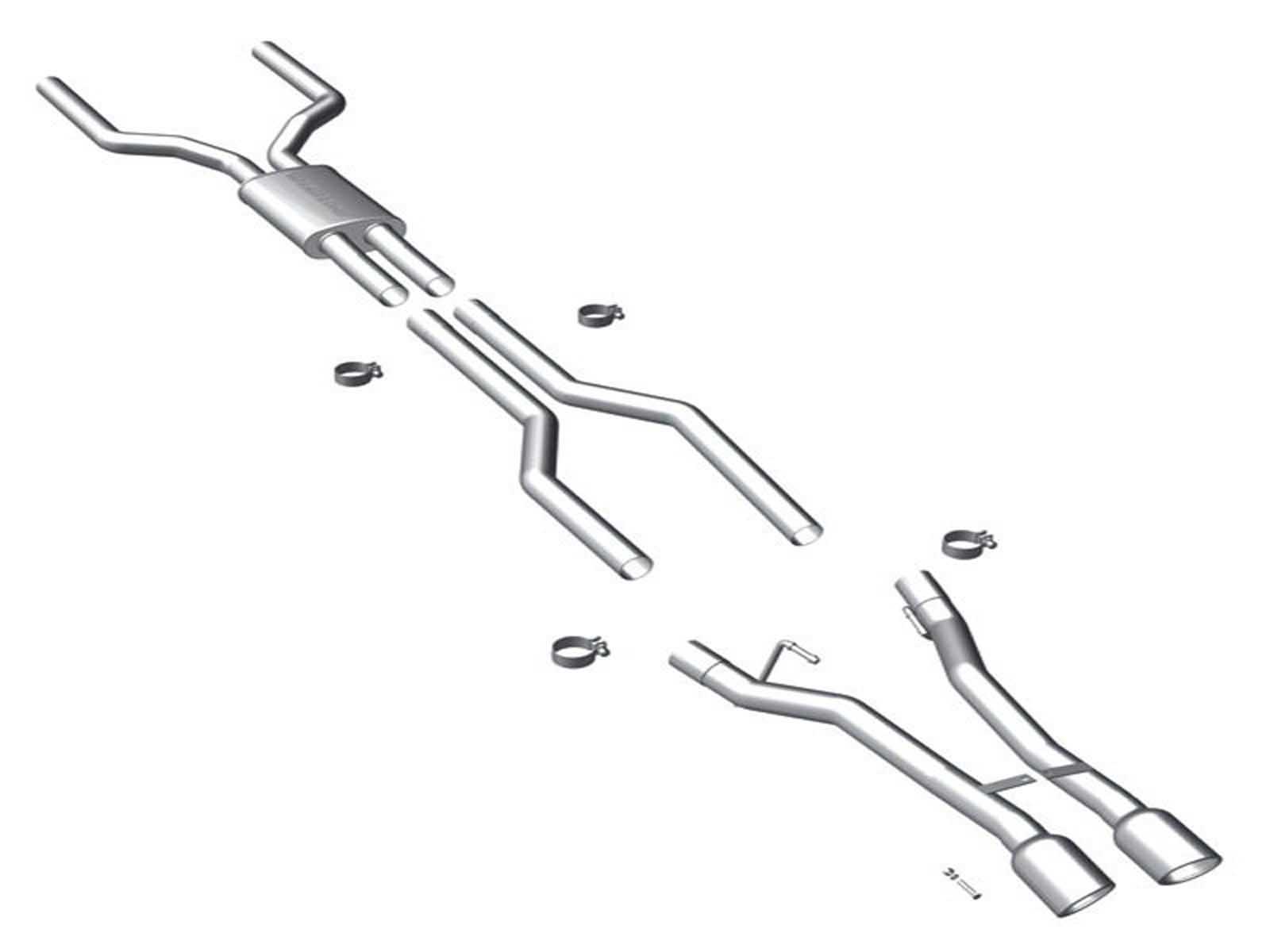 2.5" Dual Cat Back Exhaust System. Dual 2.5" Mandrel bent Stainless Tubing, Straight Through Wide Open Magnaflow Performance Competition Series Mufflers, Stainless Tru-X scavenging crossover, Stainless Steel Rear Exit Tips...The legend returns and Magnaflow has the stuff to make the Camaro sound and flow even better...The Competition Series is our most aggressive sounding version version enabling a snarling hot rod growl upon acceleration, deep rumble at cruise, a smooth burble at idle.  A real head turner, use only if you want everyone to know you have the hottest piece of modern American muscle on the road.