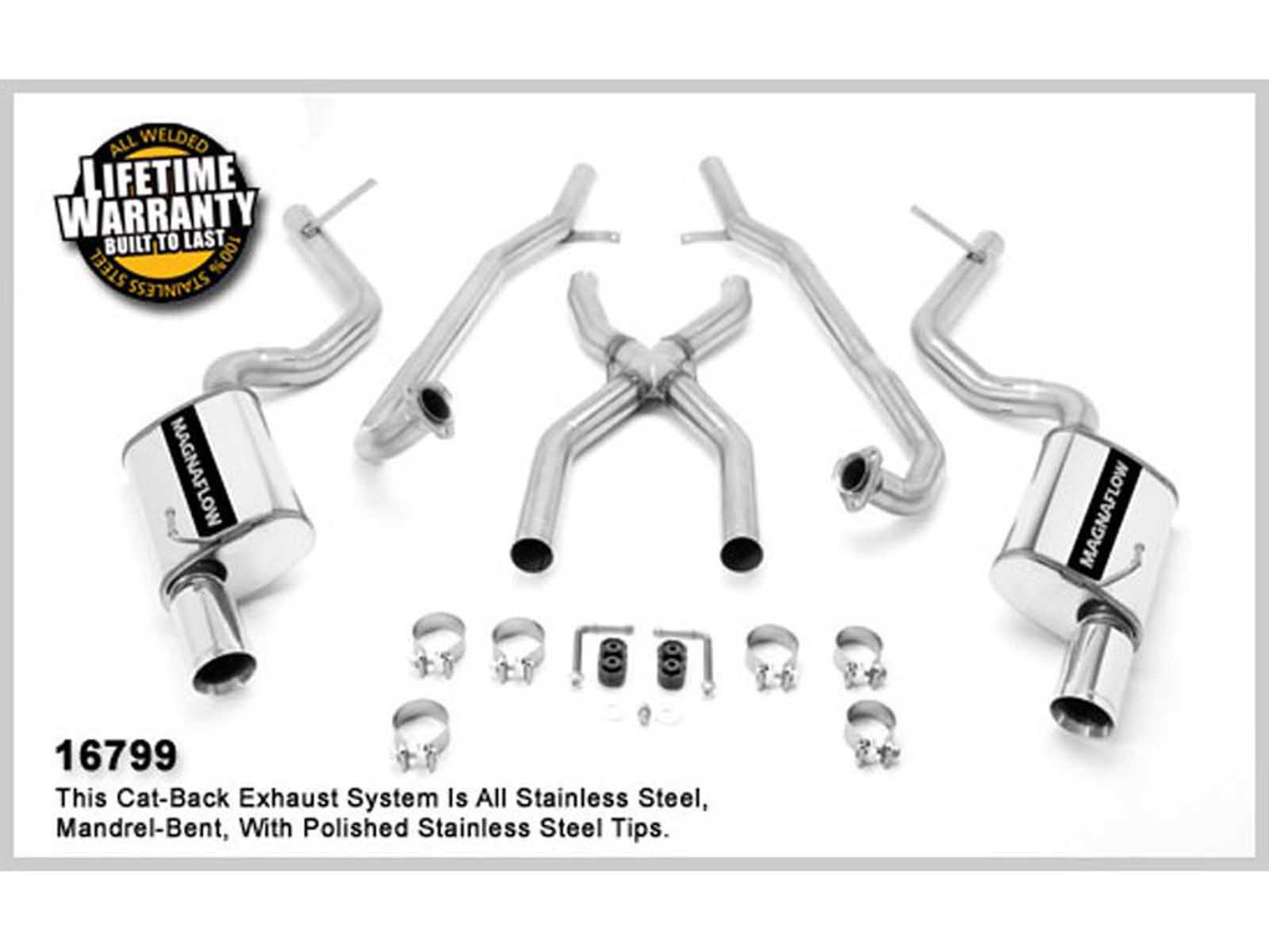 Magnaflow 1968-1969 Chevrolet Corvette Complete Manifold Back Exhaust System. Give your Vette the sound, performance, and looks it deserves! Magnaflow has stunned the Corvette market with the latest iteration of classic muscle car exhaust systems. A complete mandrel bent all stainless system from the manifold, all the way back to the tips. Features all stainless construction, a high-flow stamped X-Pipe crossover, twin wide open deep tone Magnaflow mirror-finish stainless mufflers, and to finish it all off, double wall mirror-finish stainless tips. The snarl when you snap the throttle is worth every penny in and of itself!