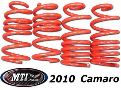 MTI Racing has done extensive road course testing at Road Atlanta and Barber Motorsports Park to assess the Camaro's suspension and create the best suspension upgrades available. MTI Racing has developed these custom lowering springs to help improve the handling of the new 2010 Camaro.