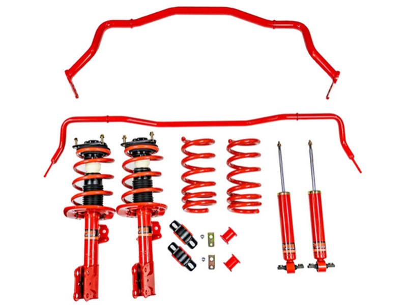 Pedders SportsRyder Suspension Kits are an ideal solution to lower your vehicle and achieve maximum handling improvements at the same time. Each kit comes with matched shocks and springs, giving the car a more aggressive stance as well increasing performance without the harshness and increased maintenance of coilovers. Paired with our complete adjustable sway bar kit, this package maximizes performance with street comfort without sacrificing road comfort. Includes fully-assembled front struts and springs, rear shocks and springs, and front and rear adjustable sway bars.
