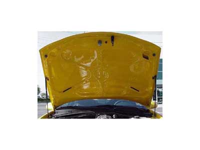 Picking up where Pontiac left off, the PFYC GTO Banshee Ram Air Hood follows the tradition of a functional dual inlet ram air system and incorporates functional heat extractors. The low profile ram air inlets allow for cooler air to enter the airbox increasing performance. The louvered heat extractors allow under hood heat to escape, helping to keep the engine bay cooler. With a finished underside, you’ll be just as proud to show your GTO with the hood up as you will with it down. The fiberglass version weighs about 25% less than a stock steel hood! The quality, workmanship and fit of the GTO Banshee Ram Air Hood is second to none. Using the finest materials available, each hood is individually manufactured by skilled craftsman with years of experience. The quality and craftsmanship of this hood will save you hours of labor for prep compared to many other aftermarket fiberglass hoods. Comes unpainted, ready to prep and paint. Finished underside. Utilizes factory hood latch, safety latch and support struts.