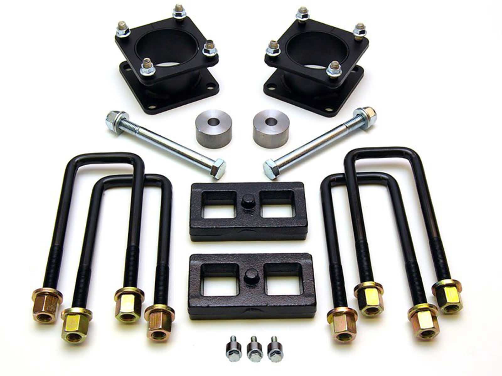 This is a complete suspension lift kit that includes a powder coated steel strut extension, front differential drop spacers, skid plate spacers and 1-inch rear lift block. The SST strut extension and diff drop bracket has been designed to provide 3-inches of front suspension lift while retaining the OEM safe suspension geometry. Unlike other kits, the ReadyLift® 3-inch suspension system requires no cutting or strut spring pre-loading and installs quickly and safely using the provided heavy-duty hardware. Quality step-by-step instructions are provided with every kit.