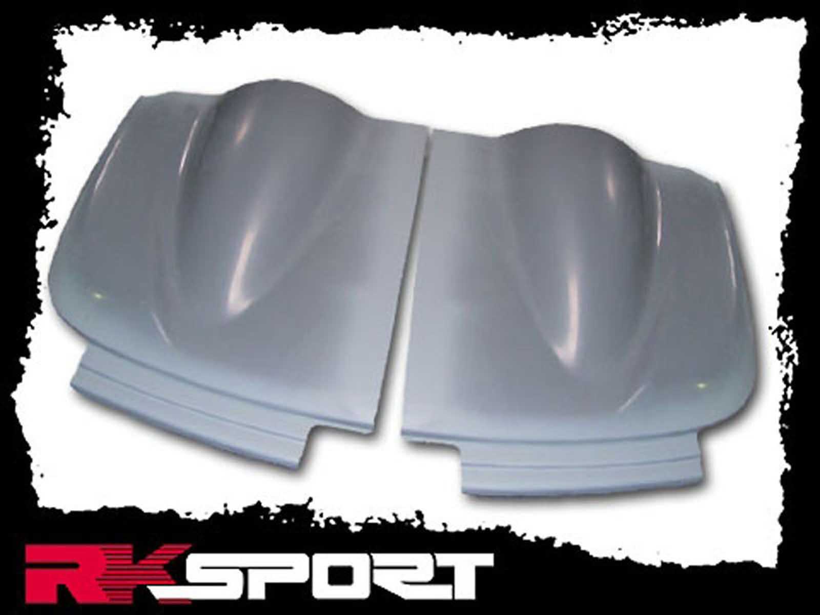 RK Sport Tonneau Covers from Accesspeed are made in two pieces, it is easily removed and stored. The Tonneau Cover is made of fiberglass and requires no modifications to the car. Hardware and painting instructions are included. Also available with real carbon fiber inlay in the blisters. Not compatible with RK Sport light bar. Ships prepped in a gray gel coat, ready for paint. This is NOT the Taiwan-made junk you see on other cars with wavy gel-coat and yellow-UV-faded carbon fiber! This is a 100% USA-Made hood!