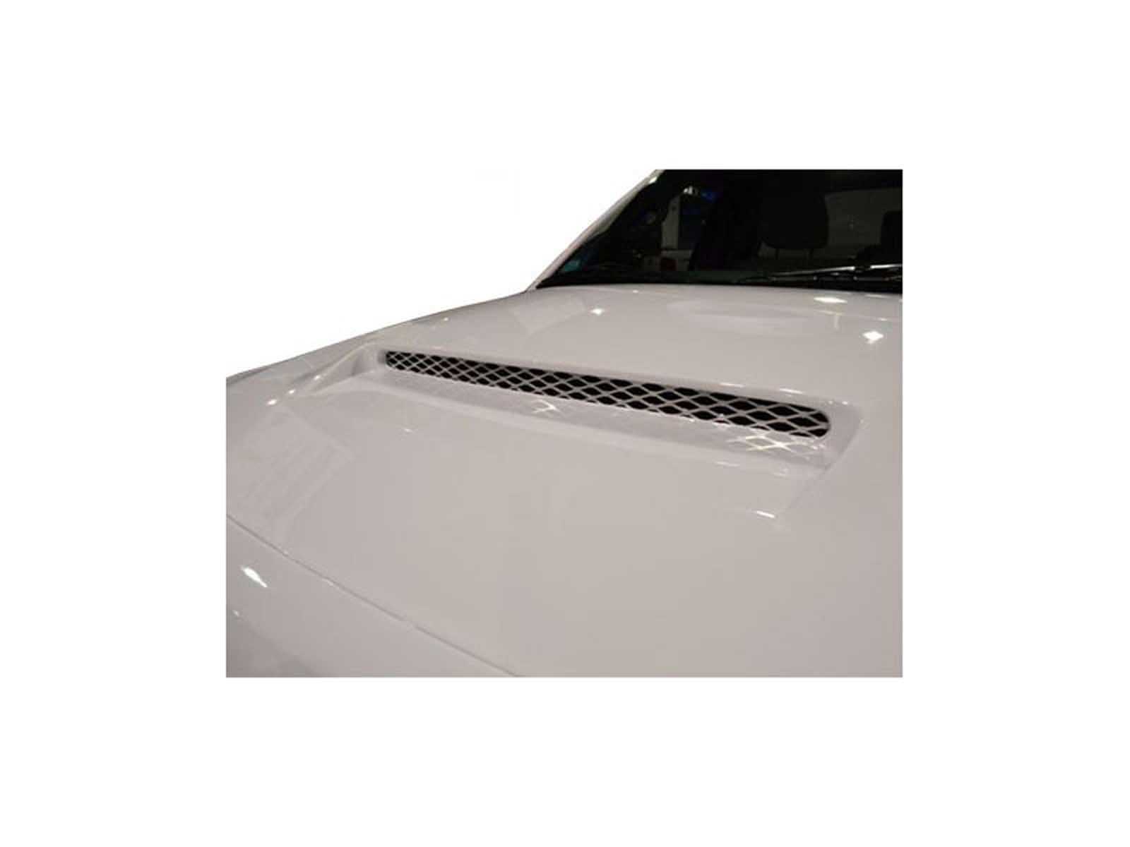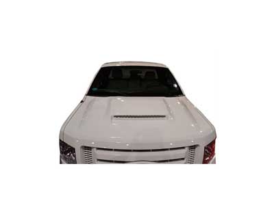 Form and function are perfectly blended in this fiberglass Ram Air Hood. The sporty lines and assertive look of the center scoop give the F-150 a distinctive look while the functionality of the scoop allows cool air to be channeled into the engine compartment just over the factory air box. Cool air is more dense and burns more efficiently than hot air and can improve both power and efficiency.