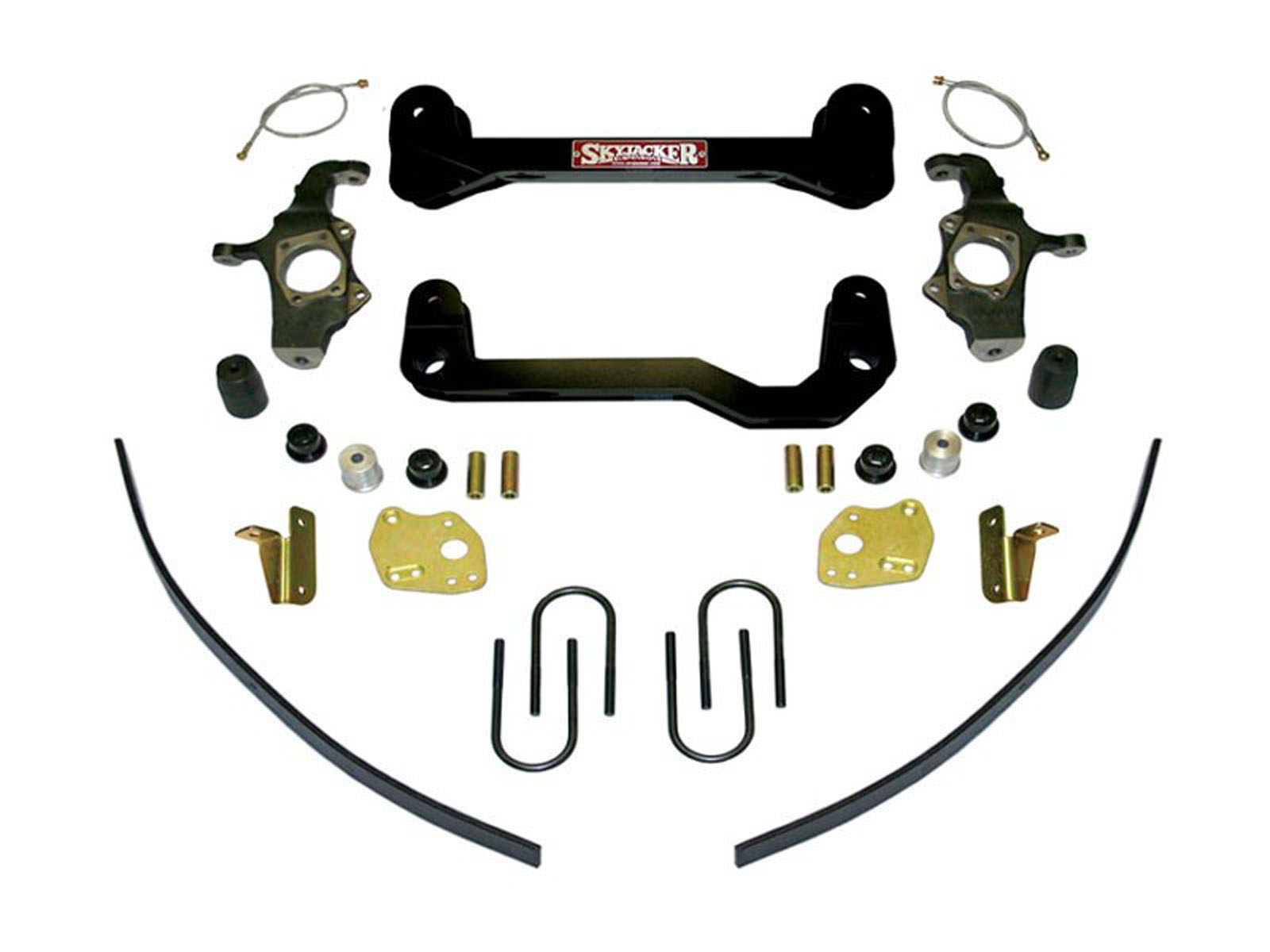 Includes front & rear shocks, brake line brackets and complete rear leaf springs. Can not re-use OEM wheels. Requires 4.75 in. back spacing on wheels. Kit designed for 2WD models.