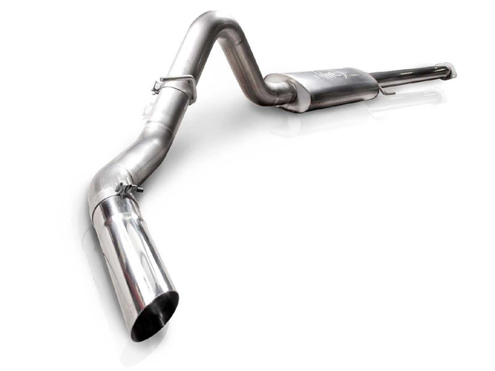 Improve the performance and sound of your F-150 with Stainless Works performance exhaust. Designed for the 2011-2014 F-150 3.5L, this 3-1/2" exhaust system features a turbo muffler and is engineered to create our distinctive growl and rumble. Choose your sound level with an s-tube straight thru muffler. This system includes tailpipes, hangers, and clamps, and features single 3-1/2" polished slash cut tip. This system is built from corrosion resistant 304 stainless steel and TIG welded at our state of the art facility in Streetsboro, Ohio. As always we stand by our products with a lifetime warranty on material and craftsmanship.