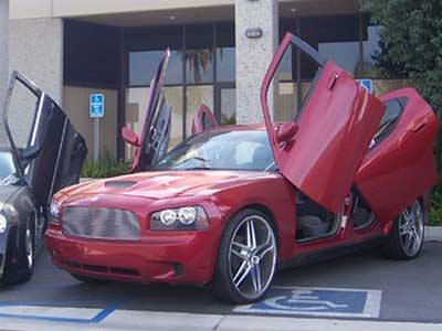 Be careful of companies selling weld-on universal Lambo Doors, Lambo Door Kits, Lambo Doors Conversion Kits, Lambo Door Hinges, Lambo Style Hinge Kits, LSD, VDC, VDI, VDC Kits, VLS, Upright Doors, Scissor Doors, Wing Doors, Butterfly Doors, Lamborghini Doors, Evo Doors, vertical door system, Slimline Lambo doors, 90 degree Lambo Doors, 120 degree Lambo Doors, 130 degree Lambo Doors, 180 degree Lambo Doors, etc. kits that are not made for your particular vehicle and that may damage your vehicle’s wiring do to the high levels of heat welding produces if not done correctly, most of them also use cheap materials to give you low prices at the cost of quality and safety. Also, be careful of companies selling so-called bolt-on kits that do not have the correct bolt pattern or worse they send you a paper template so that you must drill the holes yourself.