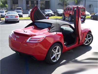 The Saturn Sky Vertical Door Kit bolts on to your car with absolutely no welding to fit your vehicle. The Vertical Doors kit is well designed and tested system. From Bentleys and Ferraris, to Corvettes and H2s, the VDI door kits are second to none! These are the only patented kits on the market! For years, enthusiasts and Saturn dealers have been installing these kits with great success. Now it's your turn to make your Sky unique!