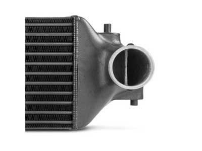 Optimized airflow & minimal backpressure: At the heart of this system is our premium Competition tube-fin core, offering outstanding cooling efficiency with minimal pressure drop. The cast aluminum end tanks are CAD-designed and CFD-optimized to maximize internal airflow. An integrated air diverter at the inlet ensures even core filling. The flow-optimized design not only improves cooling but also enhances throttle response.