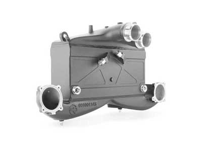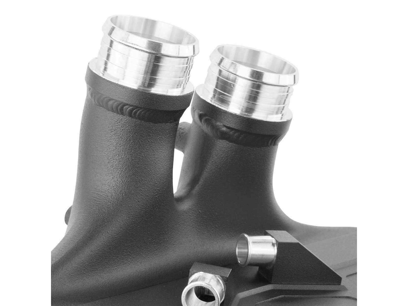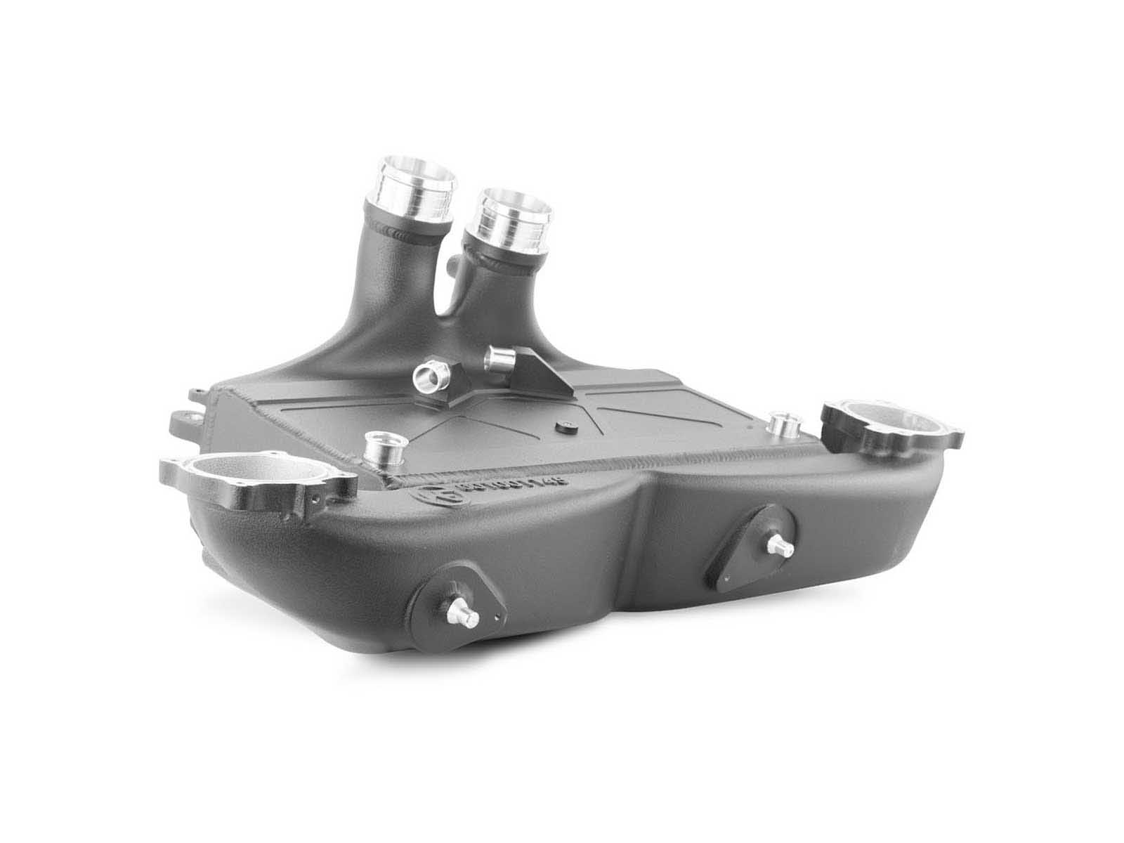 Superior cooling performance & less back pressure: The specially developed high-performance intercooler core ensures outstanding cooling properties even under extreme conditions. The precisely CAD-designed free-form end boxes made of high-quality cast aluminum guarantee optimal internal airflow and reduce back pressure by an astonishing 34%.
