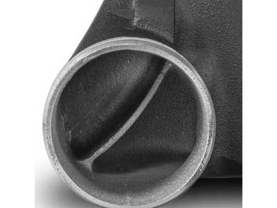 Our specially developed competition high-performance intercooler core (Tube Fine) ensures optimum airflow to neighboring components such as the water cooler. Despite its size, our intercooler is surprisingly light at just 8.9 kg. The cast aluminium end boxes were created in the CAD system and optimized using CFD simulations to ensure optimal internal airflow. An integrated air duct in the end box ensures an even filling of the competition high-performance intercooler core.