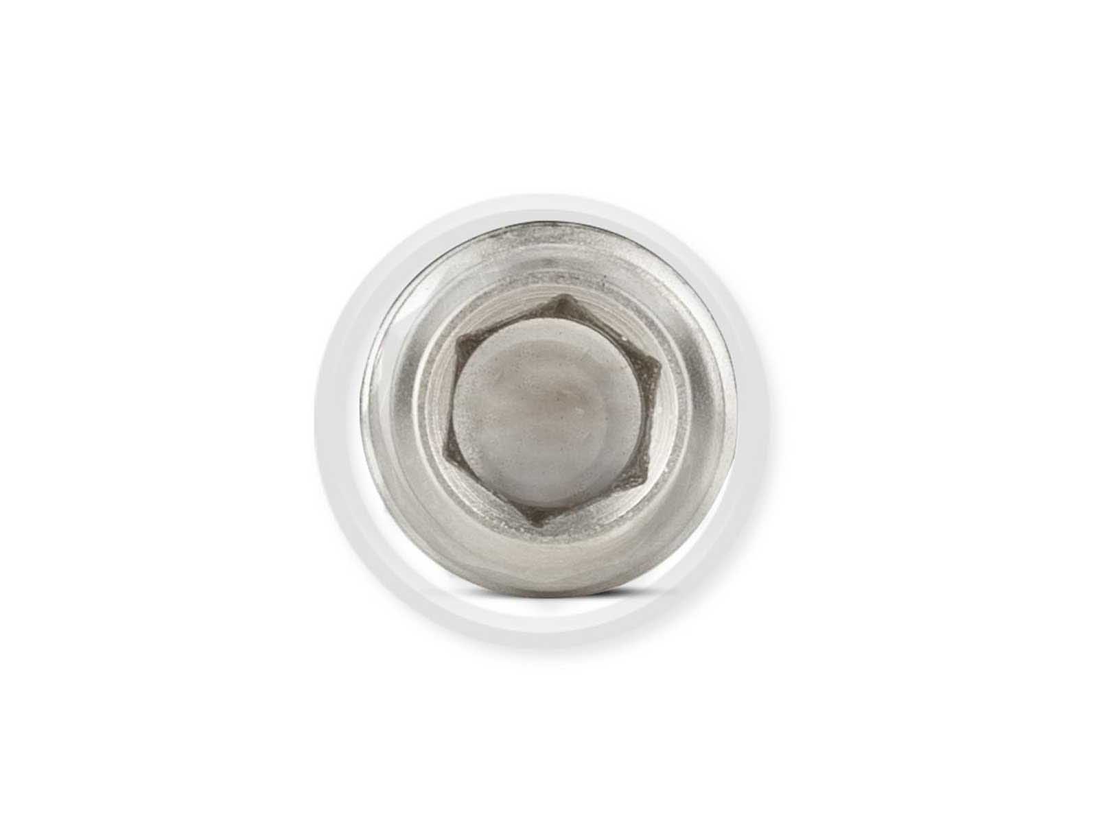 Pro-Series stud bolts have a hexagon socket drive on the head side for screwing in the stud bolts. Thanks to a cone on the engine block side of the stud, the studs are not supported on the thread flanks when the nuts are tightened, but in the bore of the thread in the engine block. This support protects the threads during frequent assembly of racing engines. A major advantage of Pro-Series over other manufacturers are the nuts and, if necessary, washers included in the set, as these also have a tensile strength of 1850 N/mm².