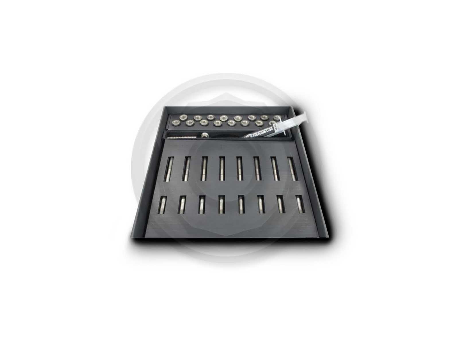 This set replaces the original cylinder head bolts with high-strength Pro-Series 18.8 stud bolts. This is necessary for major performance upgrades, as the original cylinder head bolts elongate during operation and the cylinder head can lift off. The Pro-Series 18.8 stud bolts with a tensile strength of 1850 N/mm² provide a remedy for this. In addition, these stud bolts do not need to be replaced after disassembly, but can be reused.