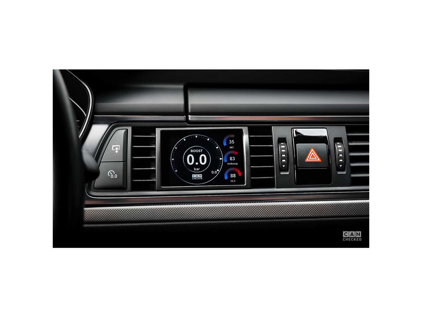 With our display, you gain access to all the data from your vehicle - yes, really all of it, including the transmission and engine control unit. Our proven display technology presents this data on a high-quality screen (with a 3.2-inch diagonal) and directly queries the sensors via the Can Bus. The Audi A6 4G Display comes with a vehicle-specific frame, seamlessly integrating into the interior while preserving the ventilation slots.