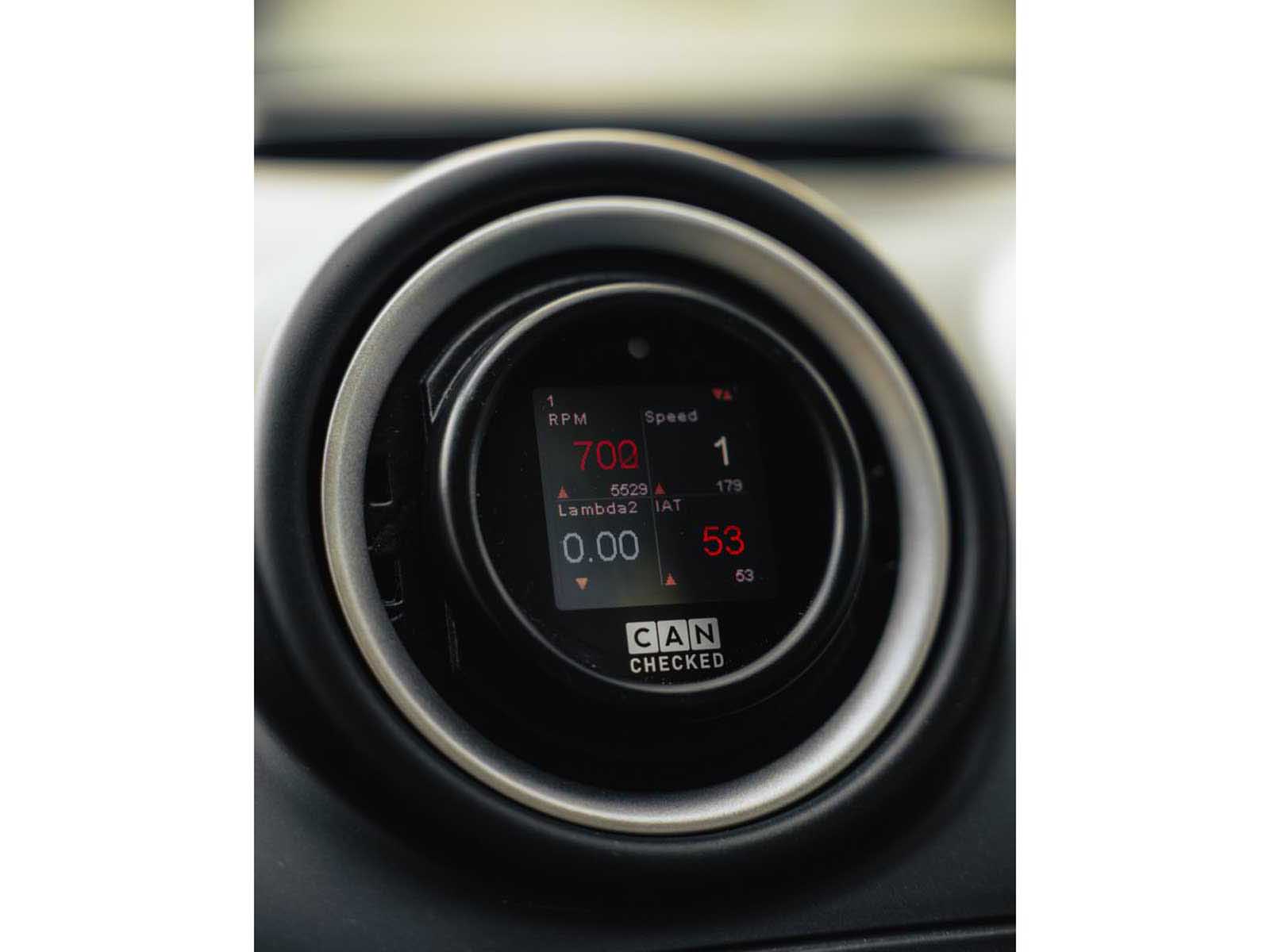 The MFD15 Gen2 is equipped with an OLED screen, which offers best readability even in direct sunlight. Due to the outer diameter of 52mm, the display is compatible with commercially available bezels for the interior, even without a vehicle-specific holder from us. The operation is done with the two, on the windshield mounted, push buttons or variable the optional rotary knob.