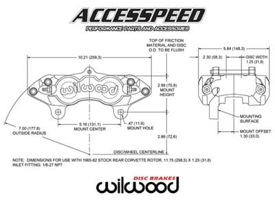 Wilwood D8-4 rear calipers are a direct bolt-on replacement for the OE factory rear calipers on all 1965-82 Corvettes. Forged billet aluminum bodies, stainless steel pistons, and high temperature seals put an end to the rust, bore pitting, and seal failures that plague the original cast iron caliper design. D8-4 calipers mount in the stock location over stock rotors and use the original type D8 brake pads. These calipers fit inside 1967 and later production steel rally wheels and most of the later model alloy wheels. Original steel “JK" code wheels from 1965-66, and some aftermarket alloy replica wheels, will requires a 3/16" or thicker wheel spacer for clearance. D8-4 calipers use the same overall piston volumes as the original calipers. Other than a new Flexline with an 1/8"-27 NPT end for the new aluminum caliper, no other changes such as master cylinder output or front to rear bias adjustment are necessary.