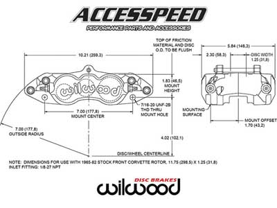Wilwood D8-6 front calipers are a direct bolt-on 6 piston replacement for the OE factory 4 piston front calipers on all 1965-82 Corvettes. Forged billet aluminum bodies, stainless steel pistons, and high temperature seals put an end to the rust, bore pitting, and seal failures that plague the original cast iron caliper design. D8-6 calipers mount in the stock location over stock rotors and use the original type D8 brake pads. These calipers fit inside 1967 and later production steel rally wheels and most of the later model alloy wheels. Original steel “JK" code wheels from 1965-66, and some aftermarket alloy replica wheels, will requires a 3/16" or thicker wheel spacer for clearance. D8-6 calipers use the same overall piston volume as the original calipers, but with the added benefit of differential bores. Differential bores counteract pad taper in high temperature racing and the 6 piston design offer greater pad support. Other than a new Flexline with an 1/8"-27 NPT end for the new aluminum caliper, no other changes such as master cylinder output or front to rear bias adjustment are necessary.