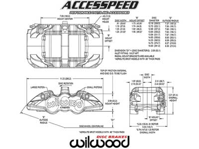 The new Wilwood AERO6 forged six piston caliper from Accesspeed delivers heavy duty stopping power for the road or track. The caliper incorporates race technology into a body design with widespread adaptability. Radial mounting, multiple options for piston volume, and a rotor diameter ranging from 12.88" to 15.00" give this caliper the versatility necessary to suit all types of heavy weight braking requirements. The new AERO Caliper is the latest innovation to the W4A / W6A series of calipers. Here at Accesspeed, we love Wilwood’s redesign with internal fluid ports that eliminate the external fluid cross-over tubes and massive center bridge assembly. The body of AERO series is stress-flow forged from a premium grade aluminum alloy billet. Stress-flow forging realigns the metal's internal grain structure to flow within the contour of the caliper body. This process eliminates the stresses and interruptions to the internal grain structure that occur when machining a straight block billet. The results are a caliper with superior clamping efficiency and ultimate strength against fatigue, stresses, and distortion under load.