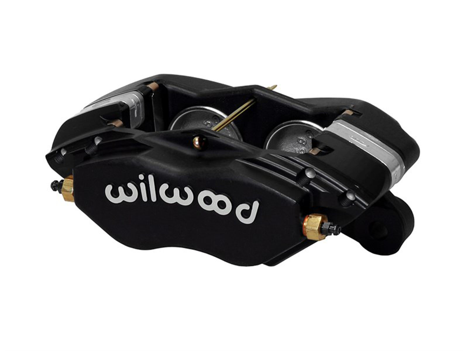 The superior strength of this innovative design is combined with proven performance features from Wilwood's earlier designs. Each caliper is equipped with Wilwood's SRS stainless steel bridge plates. The SRS plates eliminate the bridge wear caused by pad gouging and extend the service life of the caliper body. The spring-loading action of the SRS plates also eliminates pad rattle and dampens the vibration harmonics that contribute to squeal under braking. Other standard Wilwood features include high temperature seals and stainless-steel pistons to eliminate corrosion and retard heat transfer from the pads. Internal fluid passages eliminate the need for external tubes. Four corner bleed screws assure simple and effective air evacuation from the system and allow one caliper to be mounted in any front, rear, right or left position. Standard race calipers feature Wilwood's signature bright black anodized finish to resist corrosion and maintain their high-tech style.