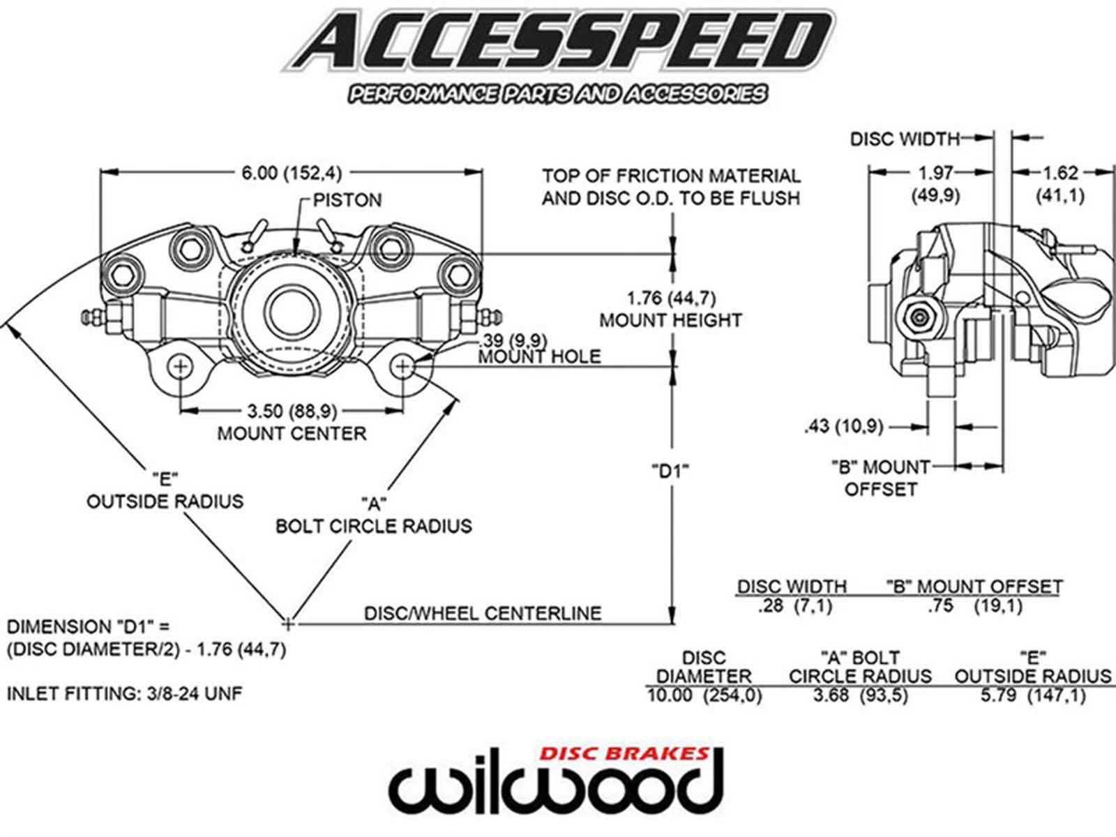 Wilwood WLD-19 Racing Brake Calipers from Accesspeed provide the ultimate in strength, weight savings, and high efficiency brake clamping for F/F and all other formula category road race vehicles configured for use with the traditional LD19 lug mount style calipers. The calipers feature a high strength, lightweight 2.3 pound forged aluminum body fitted with machined stainless steel pistons in the standard WLD19 model, or heat-blocking Thermlock pistons in the WLD19/ST models. All WDL19 series calipers utilize the same mounting centers, height and offset as the traditional LD20 calipers. The calipers accept Wilwood type 5310 brake pads, or any brake pad made to fit the original LD19 models.