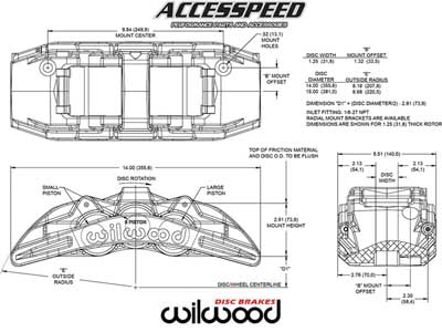 The new Wilwood SX6R forged six piston caliper delivers heavy duty stopping power for the road or track. The caliper incorporates race technology into a body design with widespread adaptability. Radial mounting, multiple options for piston volume, and a rotor diameter ranging to 15.00" give this caliper the versatility necessary to suit all types of heavy weight braking requirements. The new SX6R is the largest Wilwood caliper that Accesspeed currently offers, with the latest innovations incorporating an exclusive dust wiper seal that further protects the piston bore from dust and corrosion, allowing the caliper to be used in locales that mandate a method of environmental sealing.