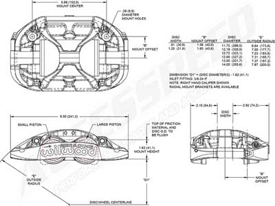 The innovative complex shape of the body removes unnecessary bulk, improves brake and fluid cooling, and decreases deflection. Four Thermlock® thermal barrier pistons reduce heat transfer to the brake fluid, and the staggered bore size front calipers provide more even engagement with improved pad wear. Hard-anodized inside the piston bores and on the surface with Type III aluminum-oxide ceramic finish for durability and equipped with single-point bleed technology and low-profile bleed screws for easy serviceability. No-bind pad retaining pins (spare included) hold your choice of multiple 0.80” thick Wilwood race compound brake pads for extended service life.