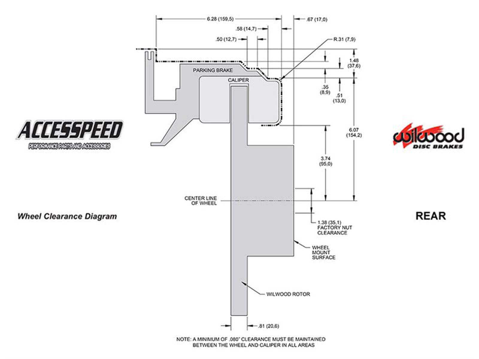 *This Brake Kit may require 15-inch or larger wheels. Please refer to the wheel clearance diagram image to verify caliper clearance for your wheel.