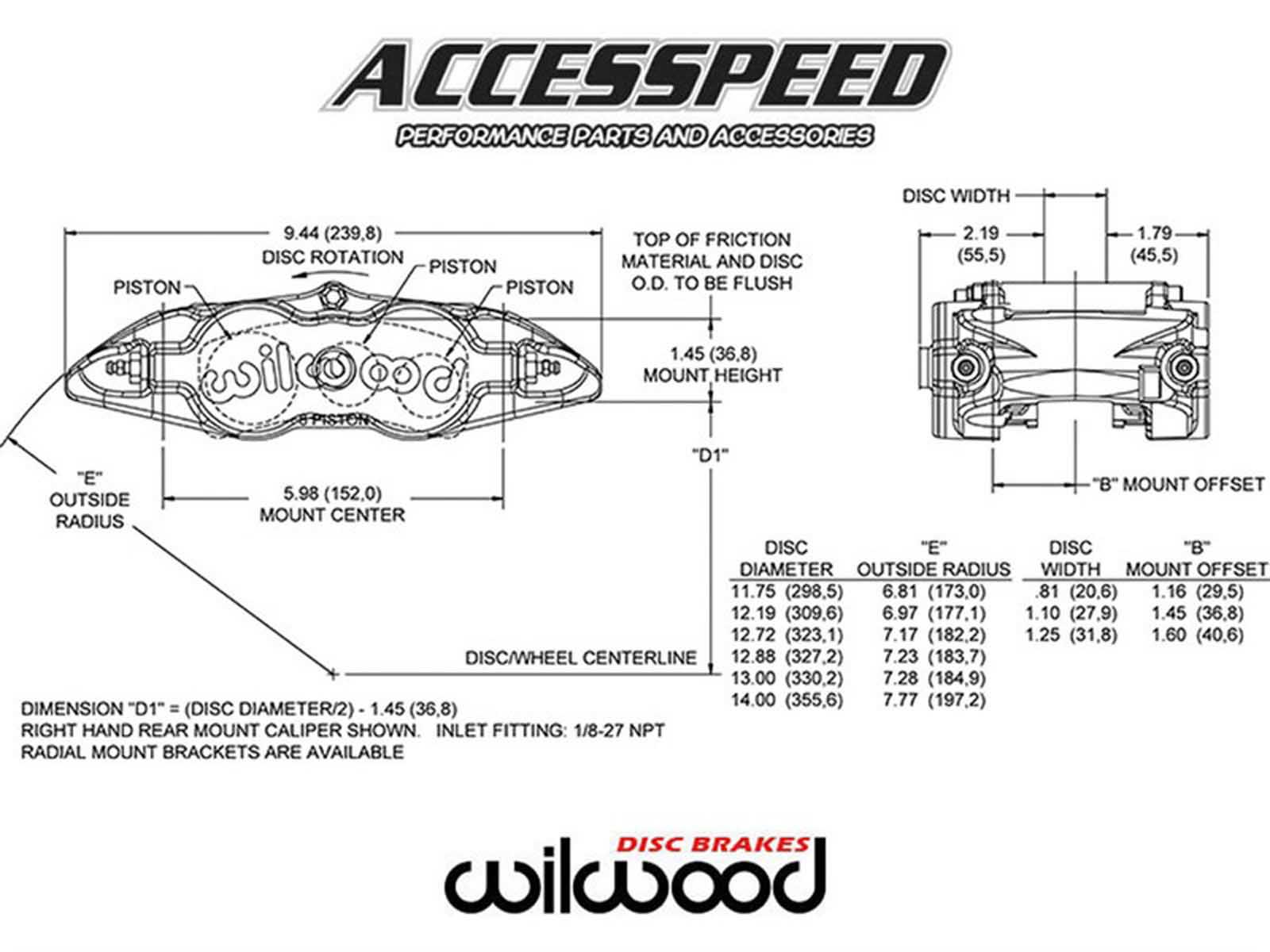The Wilwood Forged Narrow Superlite 6R/ST (FNSL6R/ST) caliper from Accesspeed adds the versatility and convenience of radial mounting to this widely popular caliper group. Radial mounting simplifies adaptation and provides two planes of adjustment for accurate alignment over the disc. These calipers integrate Wilwood's latest technology and the addition of Thermlock insulated pistons to generate big stopping power in extreme high temperature environments over a broad range of vehicle and racing applications.