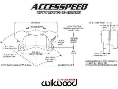 Wilwood 120-7741 GP310 Caliper,Chrome,Rear 1.25" Pistons, .25" Disc |