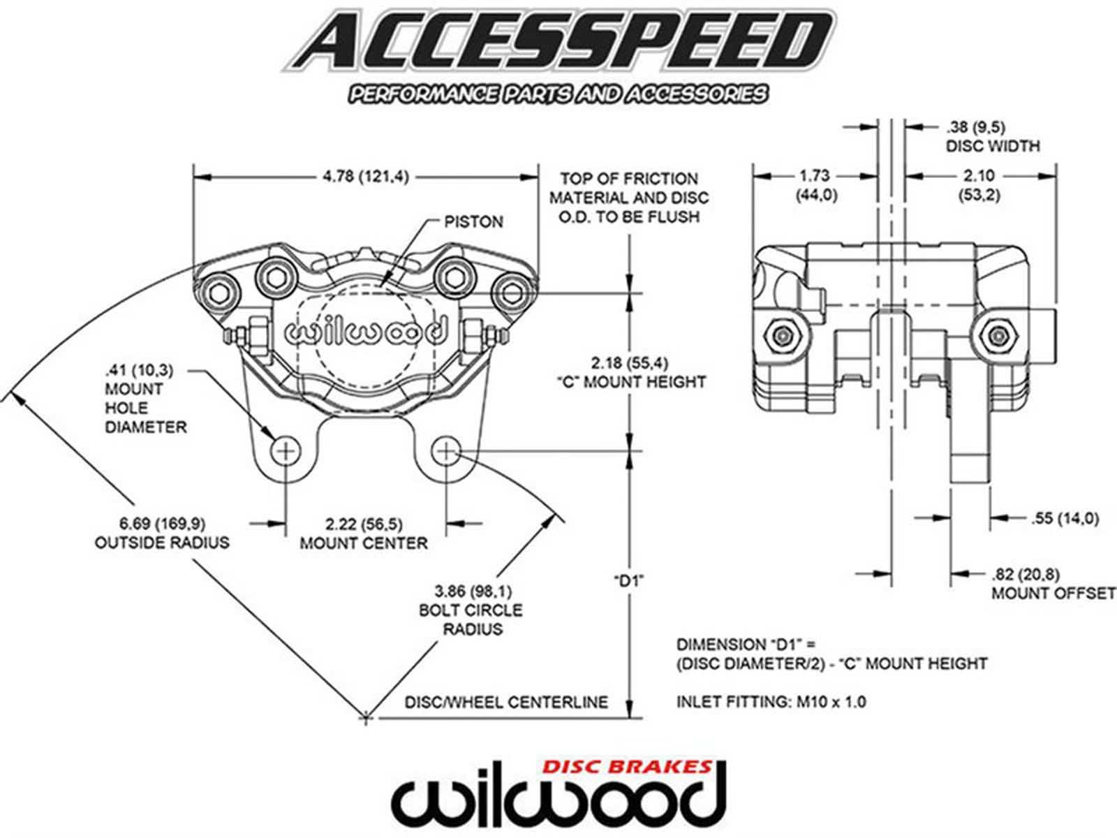 Wilwood 120-9690-RD Dynapro Single Caliper, 3.25" mt. 1.38" Pistons, .38" Disc |