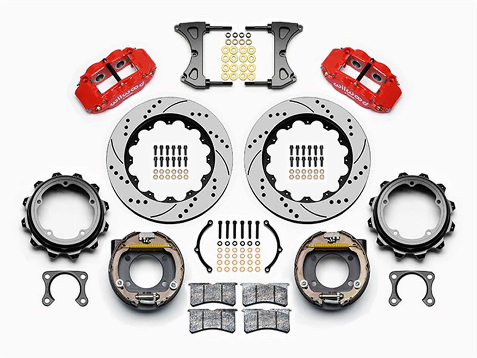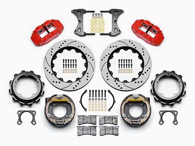 Wilwood Forged Narrow Superlite 4R Rear Parking Brake Big Brake Kit incorporates the Wilwood Forged Narrow Superlite 4R four piston calipers, combined with BP-10 compound pads and large two-piece rotors in this group of big brake kits for custom high-performance street and show machines. The neatly hidden internal shoe system provides a clean installation with superior static holding power for parking. Optional caliper finishes and rotor designs allow builders to personalize the style and performance for every application. Requires Wilwood Flexline Brake Lines, sold separately.