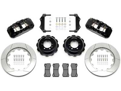 Wilwood AERO4 Big Brake Rear Axle Kits replace the factory disc brakes and use the OE parking brake assembly as a compliment to front big brake upgrades on late model high performance vehicles. High-capacity braking from the W4AR calipers, BP-10 or 20 compound pads, and oversized 14.00" rotors are matched to the OE master cylinder output, ABS function, and individual vehicle bias requirements. Enhanced brake performance, increased durability, and high-tech style compliment big wheel, tire, and suspension upgrades on customized vehicles and all others with increased brake requirements. Requires Wilwood Flexline Brake Lines, sold separately.