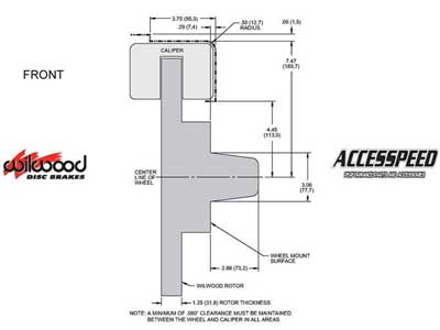 Black Calipers. See separate listing for the red caliper systems. Installation of Wilwood Disc Brake Kits may affect the wheel offset and will require a larger diameter wheel for caliper clearance. All returned orders are subject to a re-stocking fee, so please make sure your wheels will work before ordering. Shipping Promotions are valid in the Lower 48 States only. For all other areas, please contact us for a discounted rate quote.